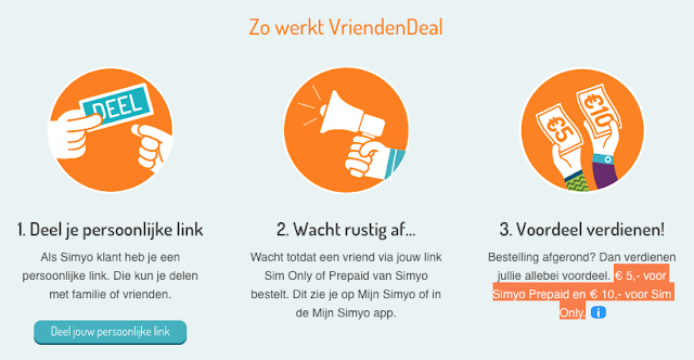 Mamabloggers, of andere mensen die een blog hebben, zullen de Simyo VriendenDeal herkennen als een soort affiliate constructie. Als iemand via een link op jouw blog iets koopt, dan krijg jij daar een beloning voor.