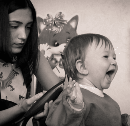 Omarm het feit dat je niet naar de kapper kunt met je kind, en maak van de nood een deugd.